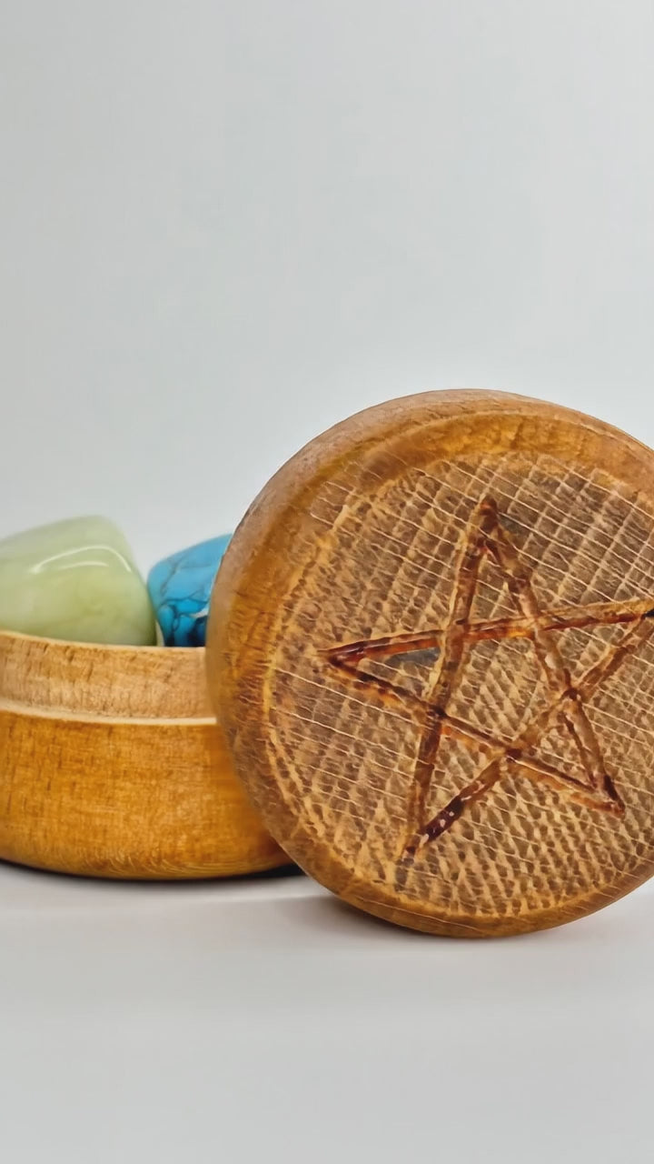 Esta caja artesanal, tallada a mano y decorada con un pentagrama, ofrece un espacio seguro para tus piedras energéticas. Con medidas compactas (4.5 x 4 cm), es perfecta para altares, rituales o uso personal. Hecha en madera con gran detalle, incluye tres piedras que aportan protección, amor y fortuna, combinando la energía equilibrada del pentagrama con las propiedades específicas de cada piedra para potenciar tu bienestar espiritual y energético.