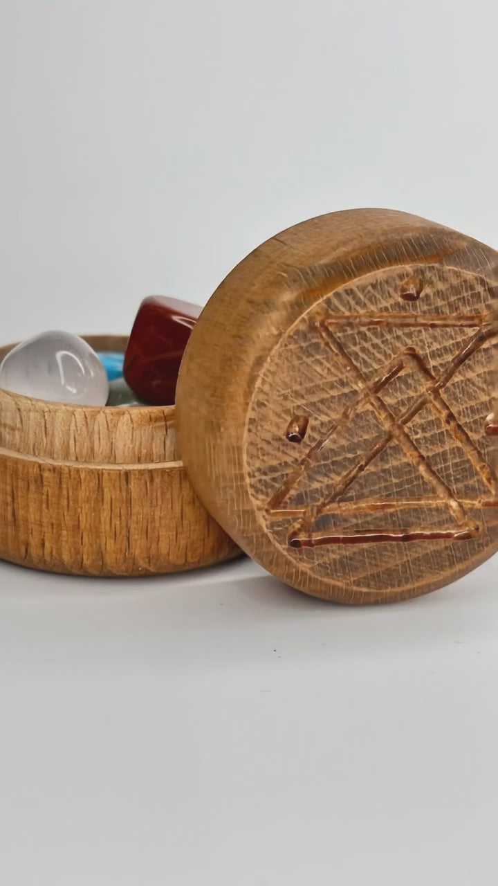 Resguarda y potencia la energía de tus piedras en esta caja artesanal, cuidadosamente tallada a mano y decorada con el sigilo de la abundancia, un símbolo que canaliza la prosperidad, el éxito y la plenitud. Sus dimensiones compactas (4.5 x 4 cm) la hacen ideal para altar, meditación o uso personal. Incluye tres piedras energéticas específicas: Protección, para alejar malas energías; Amor, que fortalece vínculos y autoestima; y Fortuna, que atrae abundancia. Un cofre que une tradición y magia para abrir caminos hacia la riqueza material y espiritual.